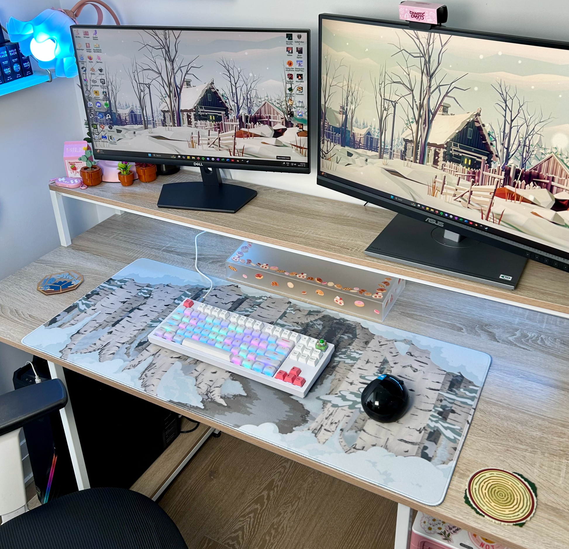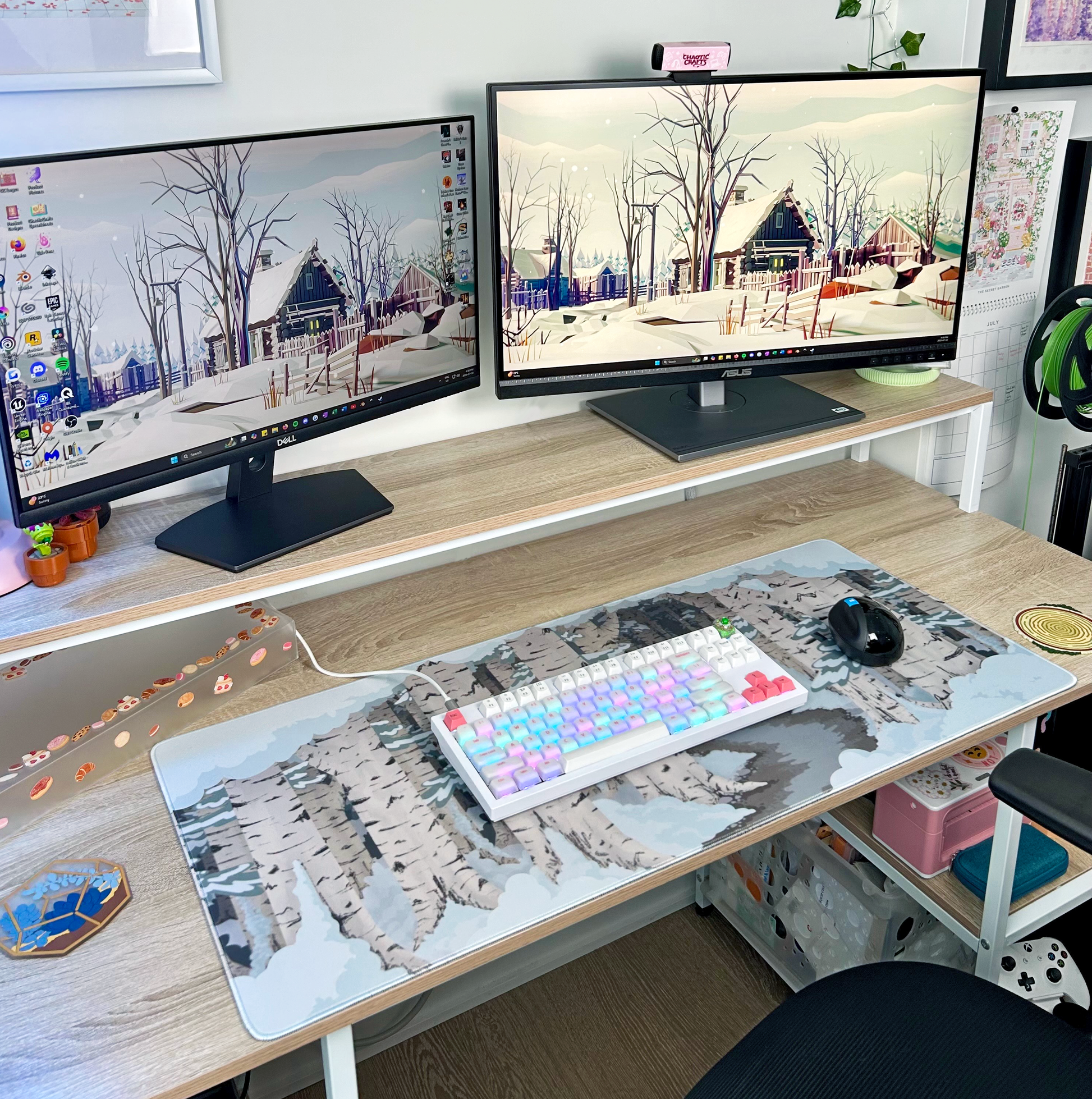 Transform your workspace into a winter wonderland with the Birch Forest Desk Mat! Featuring a snowy birch forest design, this playful mousepad adds a cozy, frosty vibe to your desk while protecting surfaces from spills and scratches. Perfect for those who love a touch of nature and winter magic during work or play.