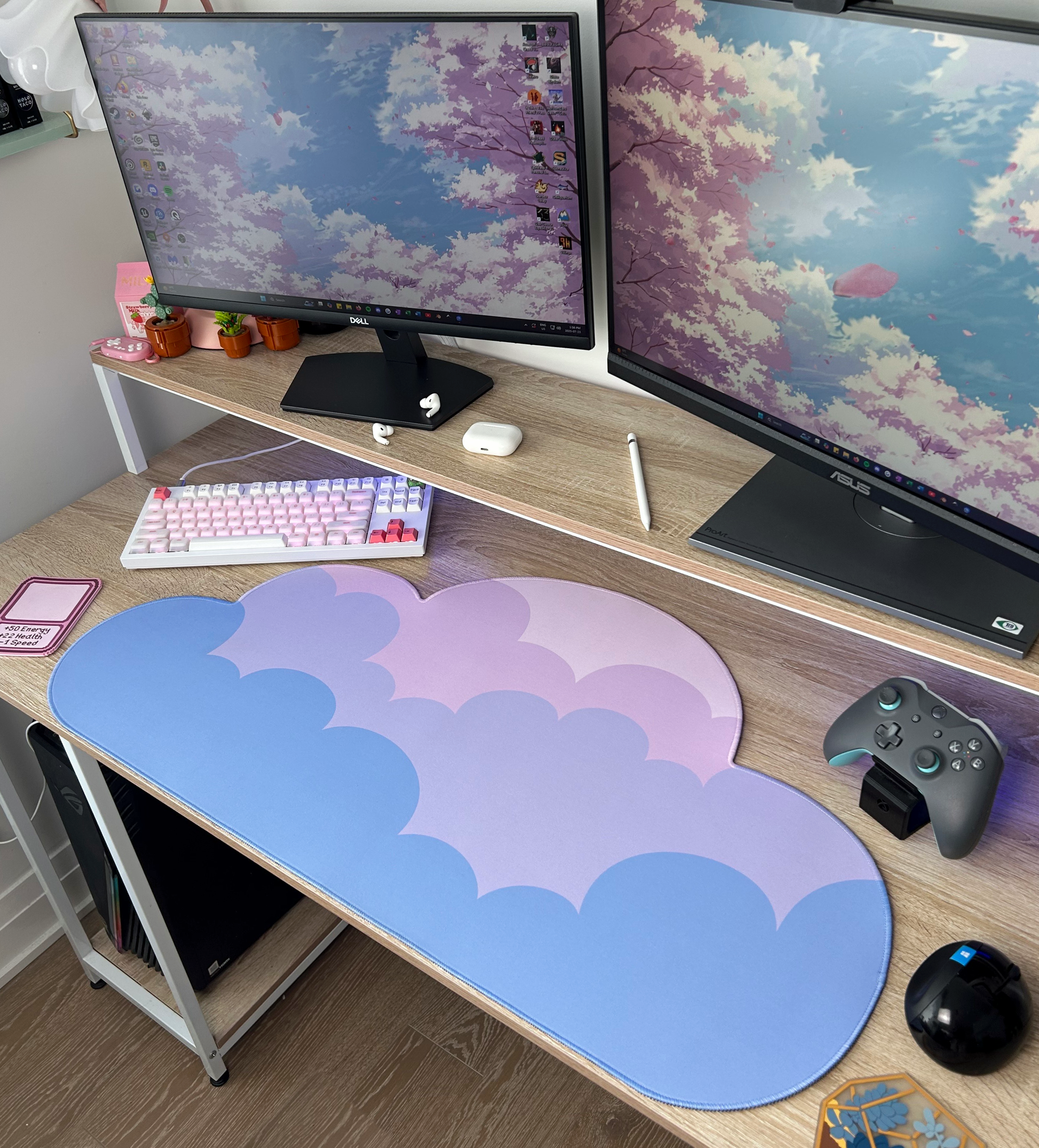 Make your setup look like heaven with the Cloud Desk Mat! Soft, cloud-like fabric on top, and a rubber non-slip bottom to keep it in place. With a water resistant fabric to keep your setup looking pristine. Create the cozy desk of your dreams with the dawn, sunrise, sunset, golden hour, hurricane, twilight or dusk colours.