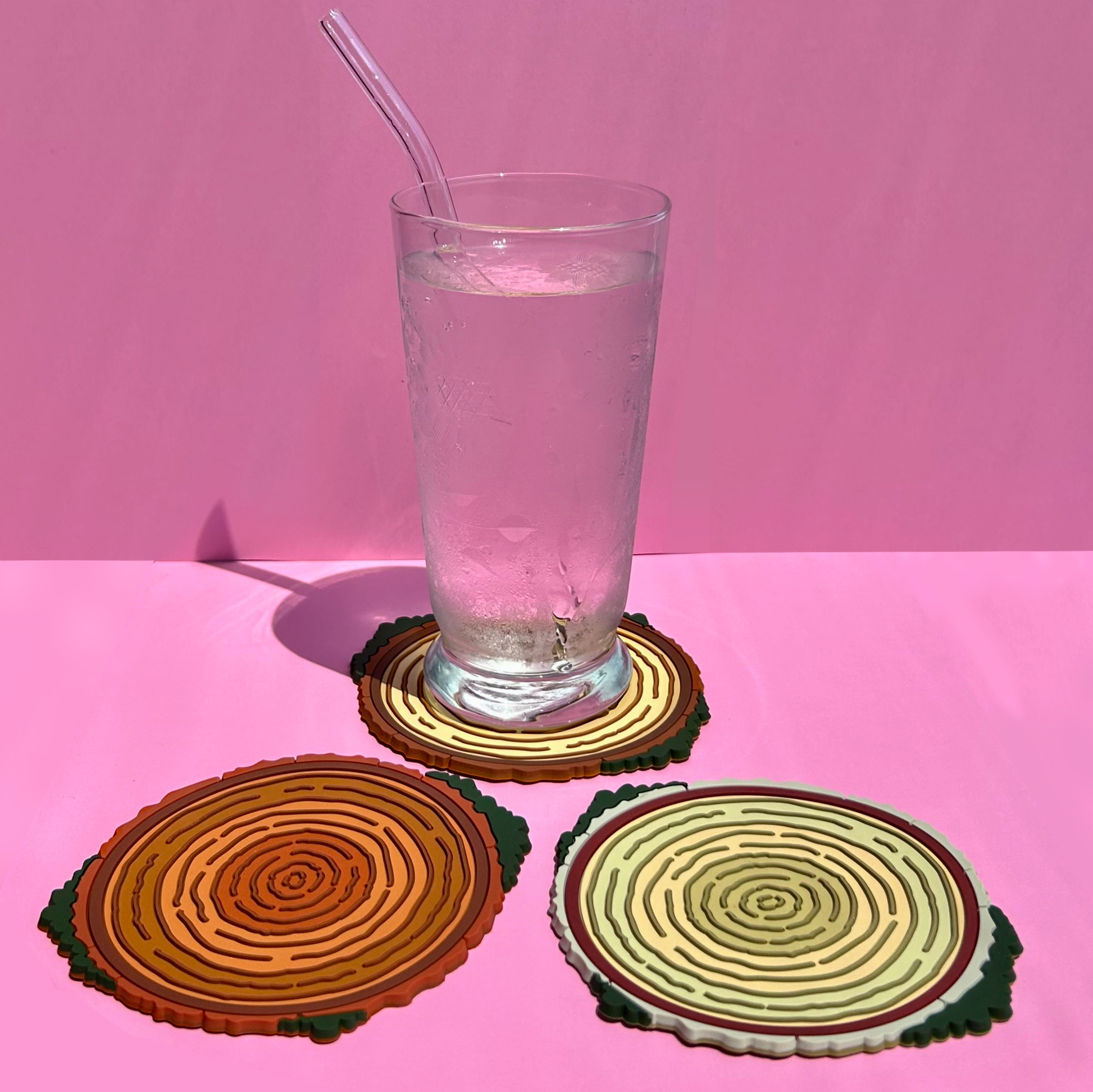 Bring a touch of the forest to your table with these playful Fallen Log Coasters. Crafted to mimic tree stumps with natural ridges that trap condensation, they keep your surfaces dry and stylish. Choose from maple, birch, or redwood designs, each topped with soft moss accents for a woodland vibe. The glossy non-slip silicone backing ensures they stay put, no matter how lively your gatherings get. Perfect for adding charm and function to any drink!